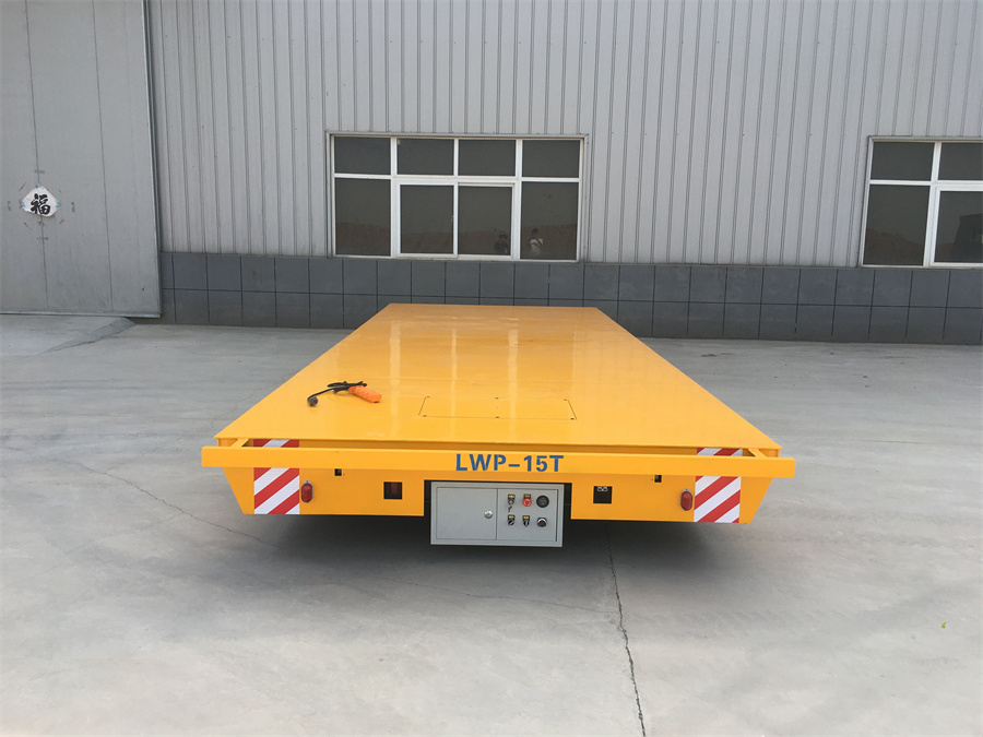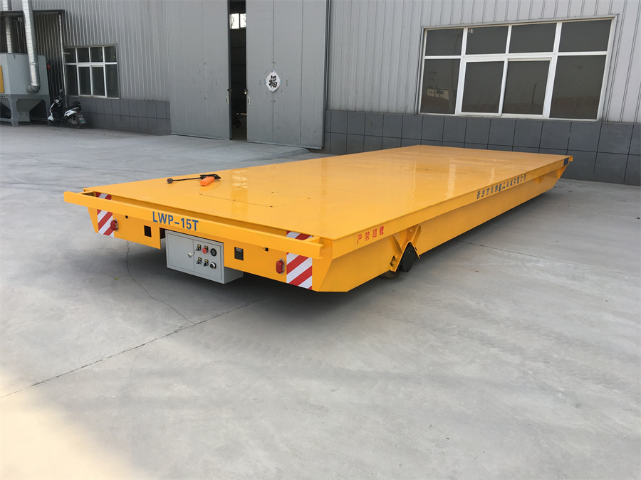載重15噸 帶防撞欄桿無軌電動(dòng)平板車