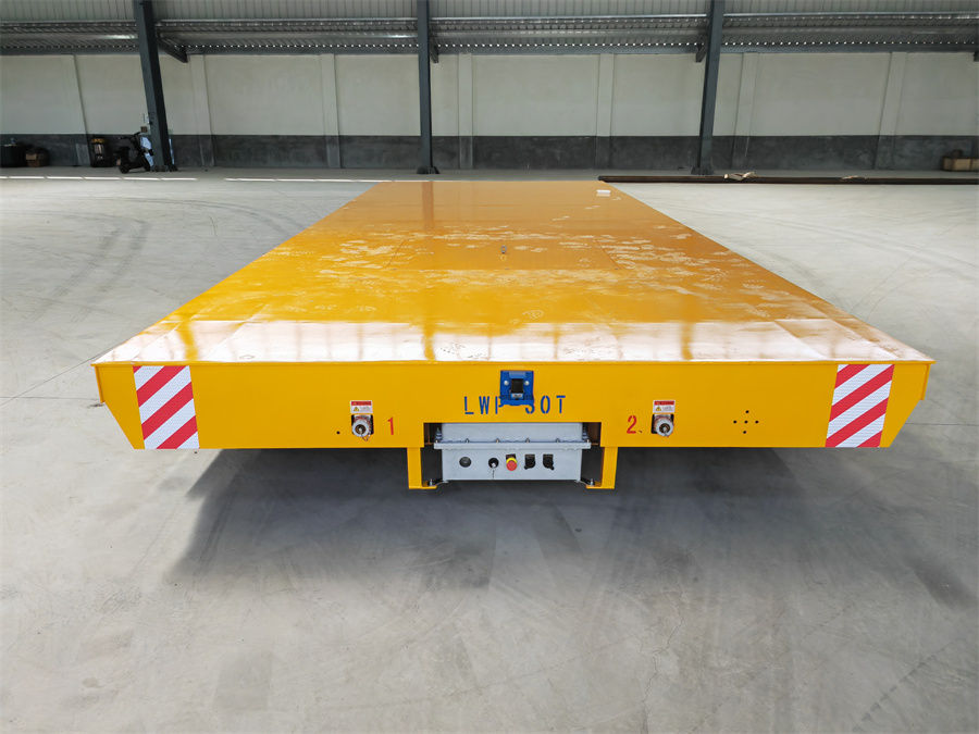 承載30噸大尺寸臺(tái)面無(wú)軌搬運(yùn)車(chē),可以單獨(dú)固定萬(wàn)向輪防止晃動(dòng),增加穩(wěn)定性。運(yùn)行方向加裝雷達(dá)防撞感應(yīng)裝置,增加安全性。